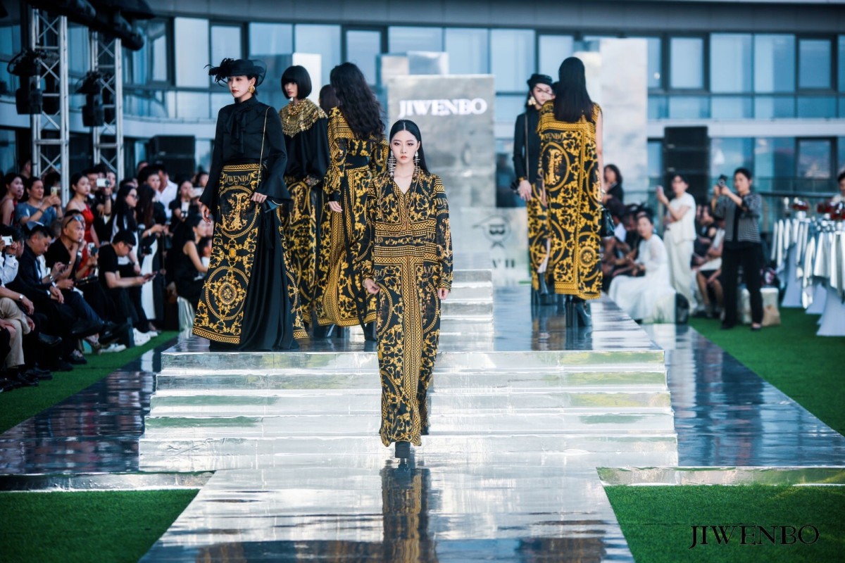 JIWENBO高定大秀以多元设计诠释国际化时尚。服饰融合印花、图腾等元素,借流畅剪裁、色彩碰撞构建视觉张力,将艺术审美注入时装,于T台空间传递文化交融的设计巧思,让时尚成为行走的艺术,彰显独特艺术表达与潮流先锋性。